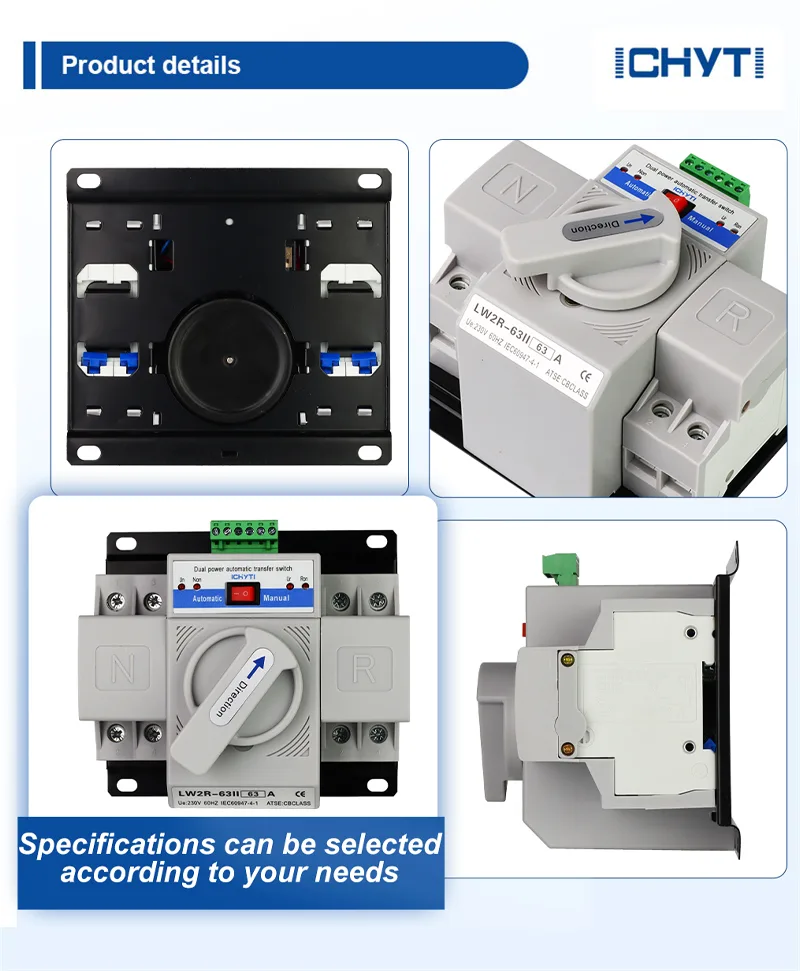 El interruptor de cambio automático del generador ICHYTI de la fábrica de China en stock cambia automáticamente a una fuente de energía de respaldo en caso de un corte repentino de energía, para garantizar el funcionamiento normal de lugares importantes. Ampliamente utilizado en edificios de gran altura, zonas residenciales, hospitales, aeropuertos, muelles, extinción de incendios, metalurgia, productos químicos, textiles y otros lugares donde no se permiten cortes de energía. Los escenarios de aplicación comunes incluyen ascensores, protección contra incendios y monitoreo, y los bancos también utilizan fuentes de alimentación ininterrumpidas similares. El interruptor de cambio automático del generador también puede lograr la conmutación automática de sobretensión, subtensión y pérdida de fase, y tiene una función de alarma inteligente.