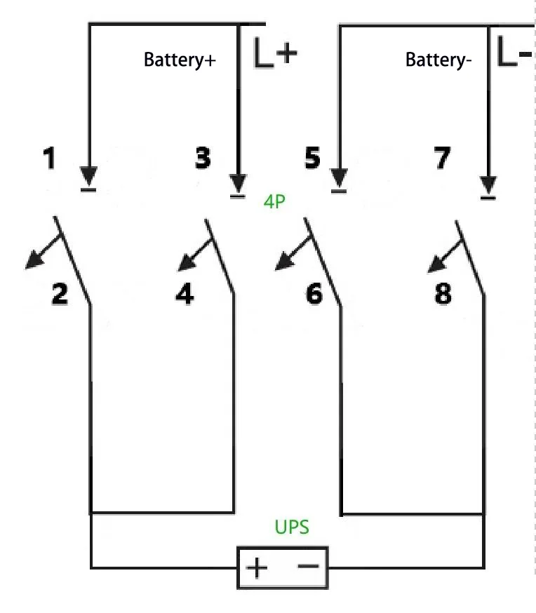 En la configuración de los sistemas de suministro de energía UPS, los disyuntores de CC realizan la doble función de aislamiento y protección contra sobrecorriente para los circuitos de la batería. Los diferentes tipos de fuentes de alimentación UPS corresponden a diferentes voltajes y corrientes nominales de la batería, por lo que requieren la adaptación de disyuntores de CC con diferentes recuentos de polos. Este artículo detallará los diversos métodos de cableado de disyuntores de CC 1P/2P/3P/4P aplicados en sistemas UPS.