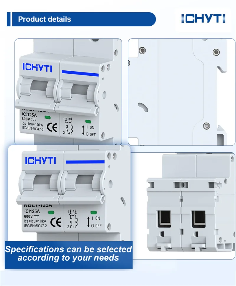 En respuesta a las necesidades de aplicación de los clientes en los campos de almacenamiento de energía solar y nueva infraestructura, el fabricante ICHYTI ha lanzado un nuevo MCB de CC de 125 A sin polaridad NBL7-125A. Este disyuntor de CC es adecuado para escenarios de circuitos con un voltaje de funcionamiento nominal de CC 1000 V/CC 600 V y un rango de corriente nominal de 80 A a 125 A. Puede lograr funciones de protección contra cortocircuitos y sobrecargas para sistemas de CC, al mismo tiempo que sirve como aislamiento y control de circuitos.